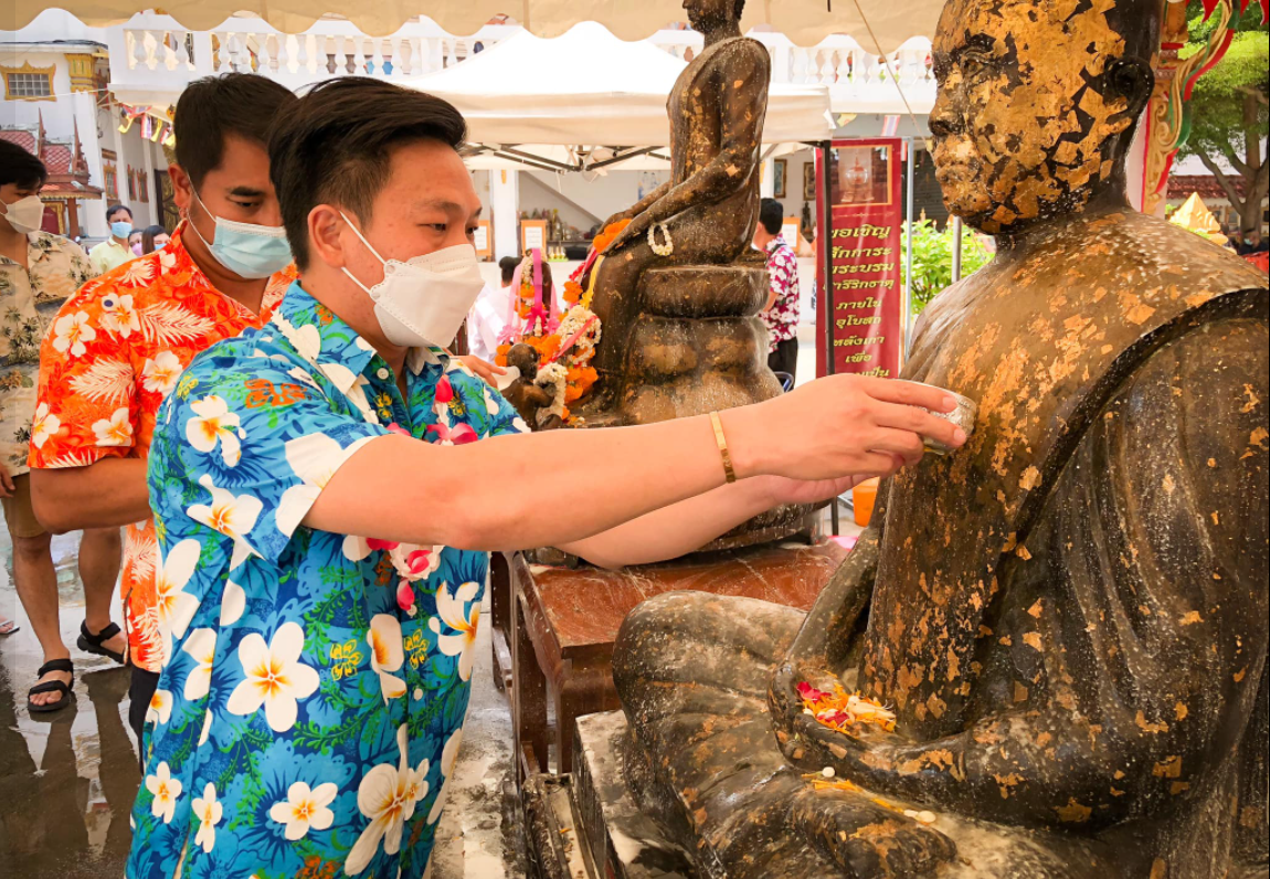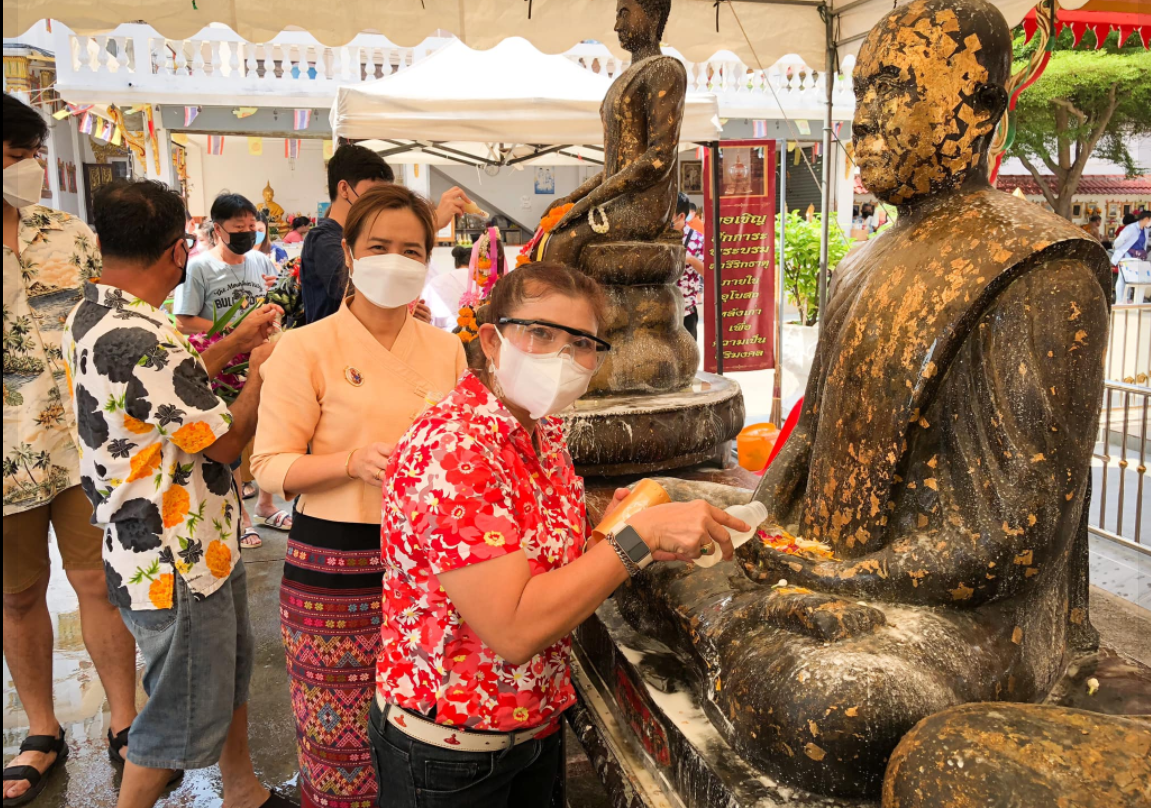 “นายกฯกาญจนา … สรงน้ำพระในวันปีใหม่ไทย อันเป็นการส่งเสริมสนับสนุนวัฒนธรรมประเพณีอันดีงาม … เนื่องในประเพณีวันสงกรานต์ 13 เมษายน 2565”